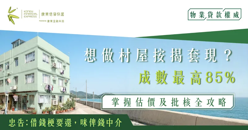 村屋業主面對子女教育支出、物業裝修翻新、業務周轉需要,甚至債務整合時,村屋按揭套現往往是靈活且成本相對較低的理財方案。透過加按或轉按,業主可釋放物業增值部分,獲得一筆可觀資金。然而,村屋按揭批核過程比私人屋苑複雜——物業類型、契約完整度、路權狀況、僭建問題等,均可能影響估價及批核結果。掌握村屋按揭成數上限、不同物業類型的批核差異、估價潛在障礙及常見拒批原因,有助業主提升申請成功率,順利套現所需資金。